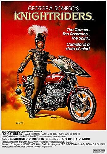 No spoilers here. George A. Romero’s Knightriders is a beloved film that forty years later still has loyal fans, myself included. The motorcycle sequences are still fantastic, making you wish they expanded the battle scenes, and Ed Harris delivers a performance that unquestionably establishes Billy’s principles and values. His heart is in this role, with no less commitment from the supporting cast that brings out the camaraderie of the troupe in their scenes. It would be unfair to dismiss the motorcycle themed plot and action sequences of Knightriders as gimmicks because Romero crafted a near perfect film on all levels. Could you imagine a drive in double feature of Excalibur and Knightriders? This is a film that lives up to the amazing image on the movie poster. Long live the king.